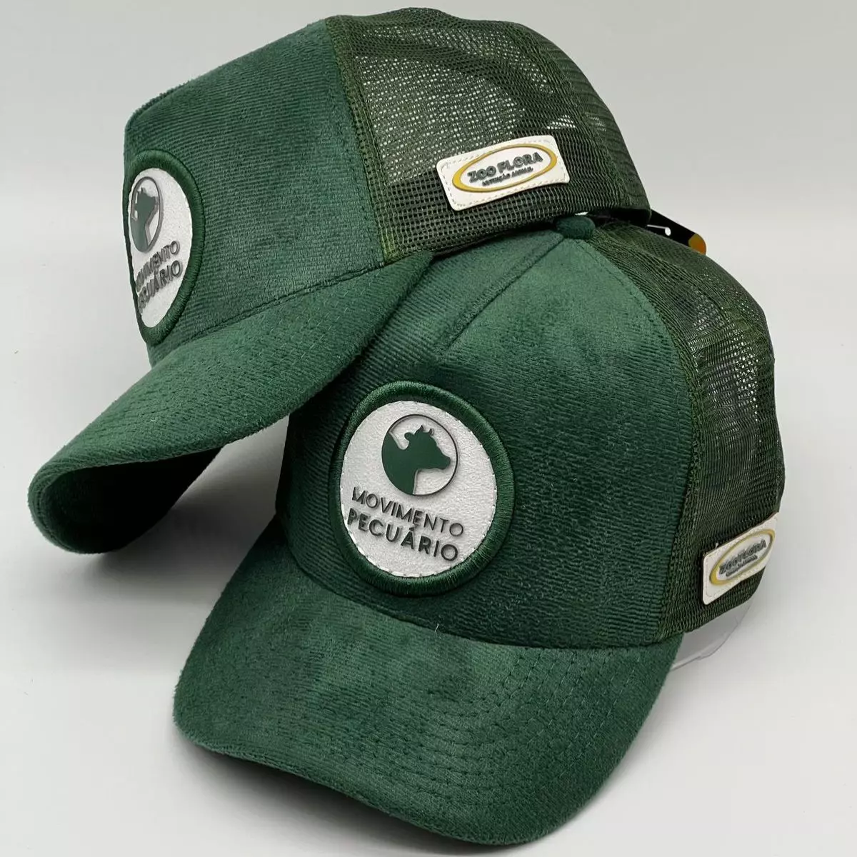 O Boné Truck Movimento Pecuário une estilo, identidade rural e acabamento premium em uma peça exclusiva. Produzido em camurça verde escuro com tela trucker, ele oferece conforto, respirabilidade e alta durabilidade. O patch em alto relevo traz sofisticação e presença visual marcante, ideal para quem carrega o agro no peito e no estilo. Um boné robusto, elegante e autêntico, feito para quem vive o movimento pecuário.